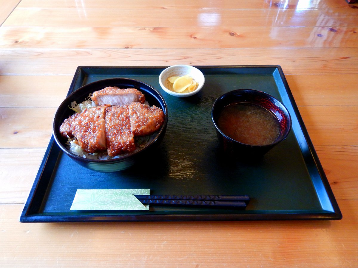 肉を噛んでる!って感じの厚さがいい「青い塔」のソースかつ丼!(*´ー`*) ちなみに奥にある青くない屋根の建物がいまの店舗。一瞬「えっ!」ってなるw