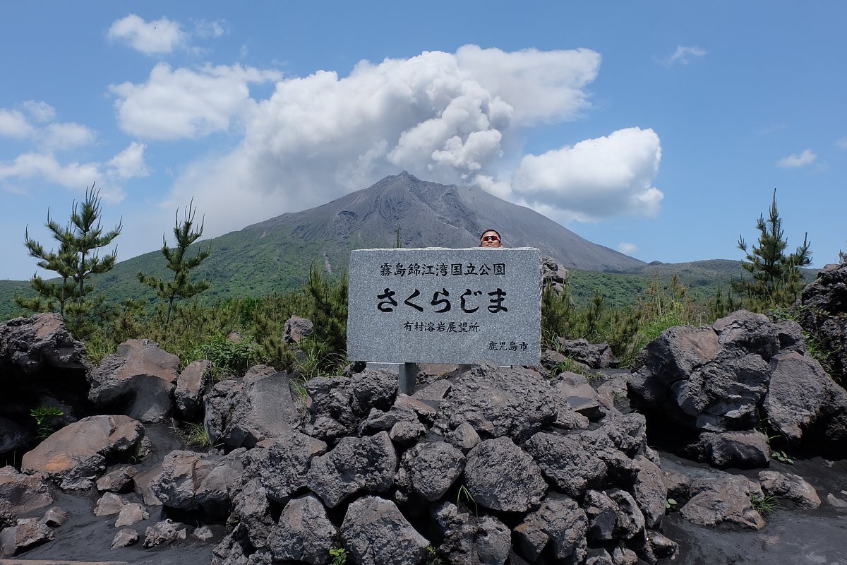桜島の湯之平展望所ではとにかく火山灰を浴びまくった! 走っている最中にシールドを開けると目に入るし、道路に積もった火山灰をすれ違うクルマが巻き上げる。止まっていた数分の間にバイクに積もる。 これが日常だとホント大変だと思う。。。