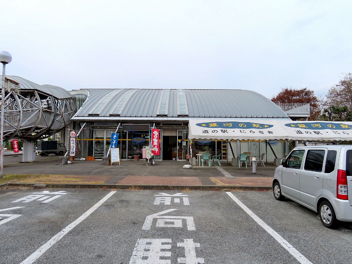 奇抜な歩道橋!と思ったら道の駅。歩道橋を渡った先には日帰り温泉。あの丸いのは温泉プールらしい。 銀河の駅ってことは星空推しかな。 予定になかった休憩でもお土産はしっかりGET!😁