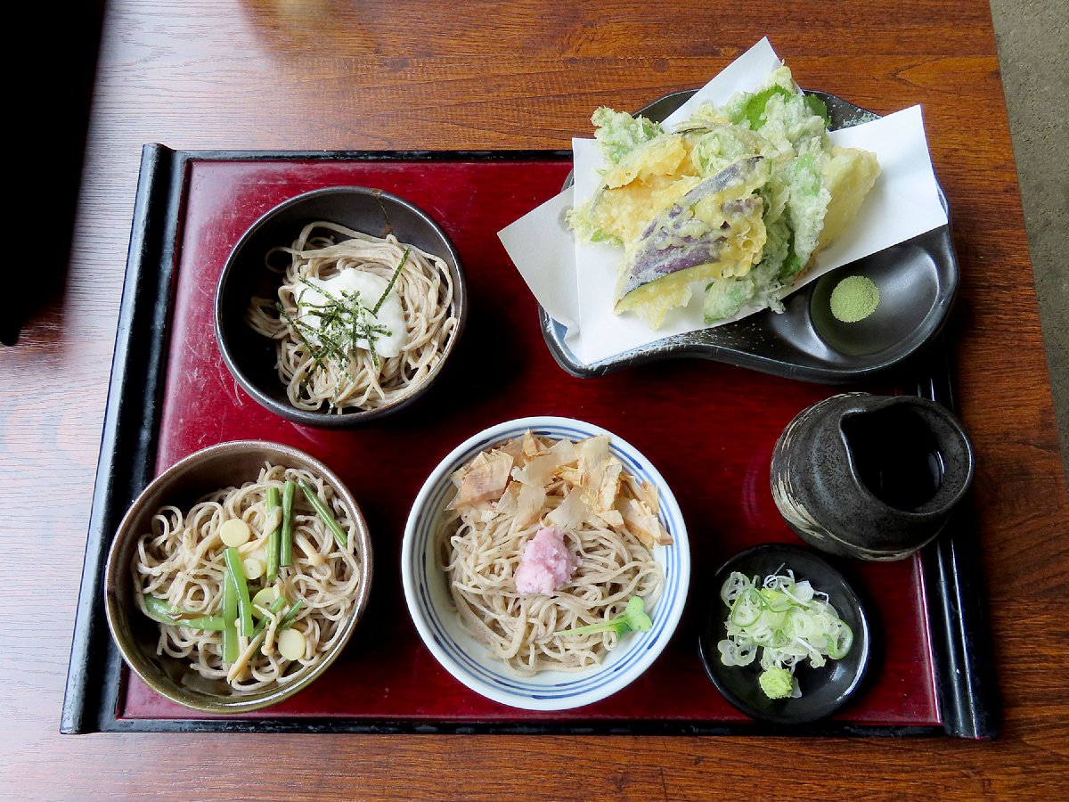 せせらぎ街道沿いの清見庵で、おろし・山菜・とろろのそば三昧😆 天ぷらもいい感じで、テラス席は気持ちええ😊 大倉滝ってところまで散策できるらしい。 登りの往路が35分ってことは1時間あれば。。と食べながら検討。