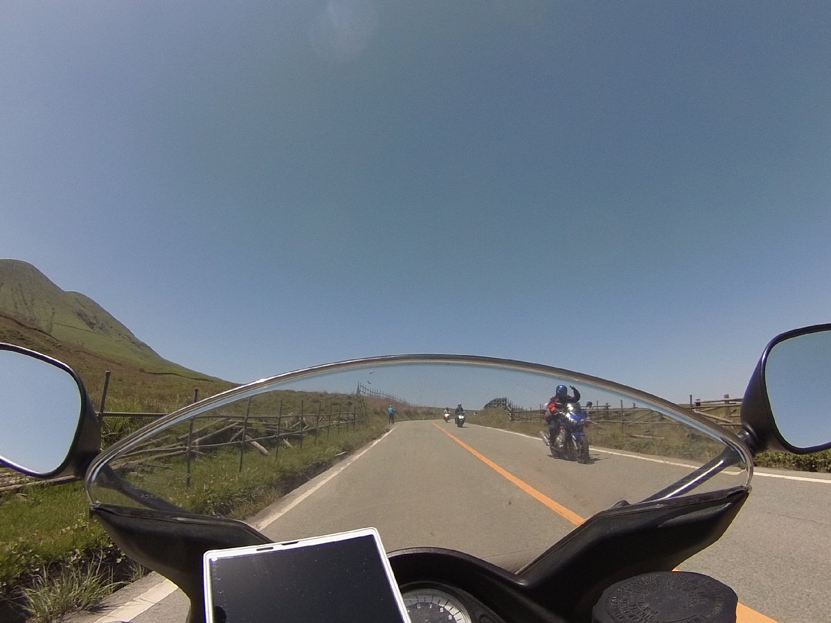 阿蘇の登山道、阿蘇パノラマライン。 阿蘇市街地から山頂へと晴天の中、渋滞することなく最高のツーリング。 もちろんミルクロードや、やまなみハイウェイもよかったけど、高原を駆け上る感じが気持ちよかったー! たくさんのライダーさんともご挨拶。 火山活動はとりあえず落ち着いたようでなにより。