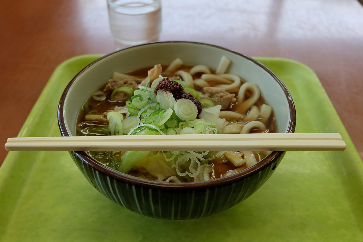 中央道の初狩PA。朝食兼昼食を。数多くあるメニューの中から選んだ「吉田のうどん」。トッピングは受け渡しのカウンターにあった練り唐辛子。注意はちゃんと読もうねw この量でヒーヒーなる辛さ!w