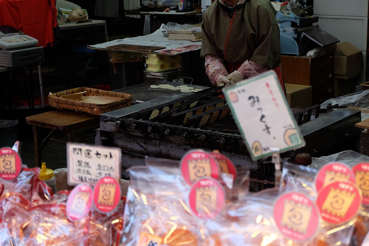 成田山表参道をぶらぶらと。さすがに休日は人が多い。10:30ぐらい?に歩行者天国。川豊と駿河屋は開店前から行列。せんべいとか、でっかいたわしとか、見るだけでも楽しめる店々。どこか温泉街っぽい感じもある。