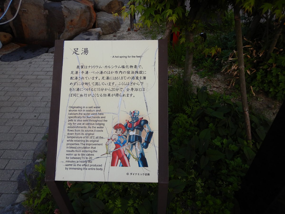 輪島の朝市通り周辺を散歩。翌朝の朝市の下見をしつつ、神社やら足湯やら。輪島は電柱・電線がないエリアがあって街並みがキレイ。好きだなー。名所の案内は永井豪のイラストつき。