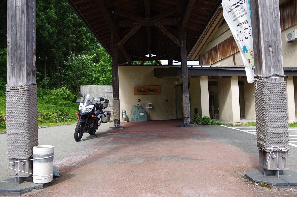 上畑温泉の一軒宿「さわらび」。 部屋に囲炉裏があったり、露天風呂もよかったんだけど。。 (・_・).。oO(食事がね。。飲み物はすぐ持ってきて欲しいし、お椀がふたつあるし、山奥の宿で海の幸を出されても。。ベタな郷土料理がうれしい。) 屋根下にバイク置けたのはうれしいかった!(´∇`)
