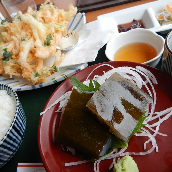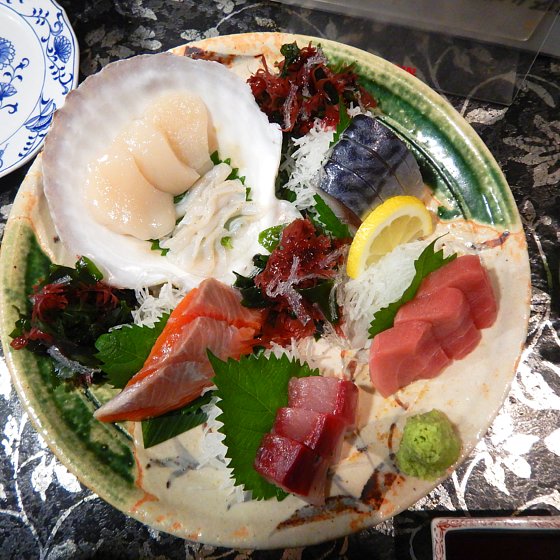 刺身定食がおいしかった「お食事処 早磯」。朝メシ食べ損ねてたから旨味倍増!(´∇`)道の駅あつみ。摩耶山の原酒GET!