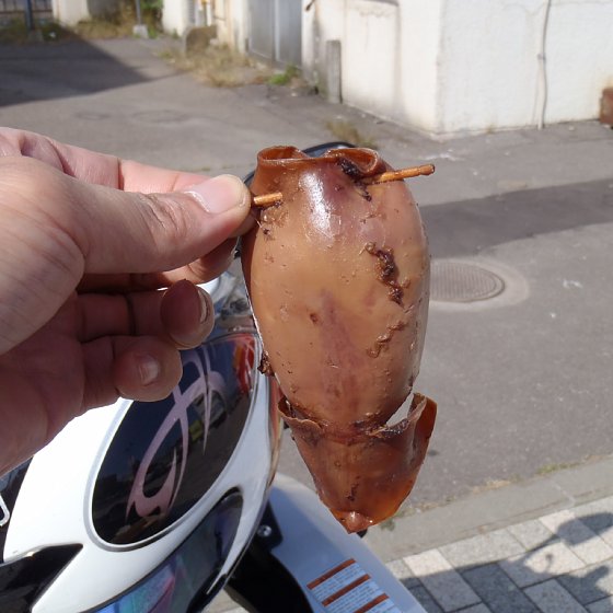 スルメイカに2種類の米(もち米とうるち米)を詰め、甘辛だれでじっくり炊き上げた歴史ある定番ご当地グルメ。森駅構内のKIOSK、駅前の柴田商店で販売。北海道茅部郡森町。