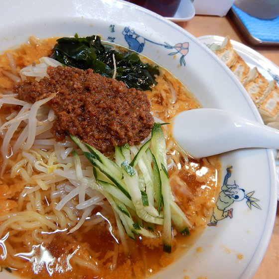 テンホウ諏訪インター店。こう暑いと選択肢は冷やししかない。クーラー効いた店内で冷やしタンタンメン食べて清涼感を得て、また炎天下を走る!( ̄∇ ̄; )