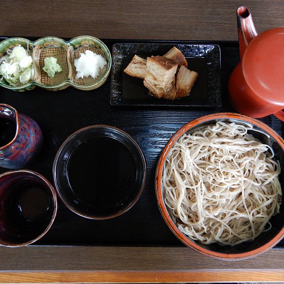 青木村特産の品種「タチアカネ」が食べられる。「さわやかな香り」と「ほのかな甘味」が特徴で、それを粗挽きで打つというこだわりの逸品。季節の地物野菜を使った天ぷらをセットにした天ざるが人気。