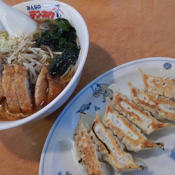 長野県民食の「テンホウ」。この日は諏訪湖の西にある丸山橋店。コショウをたっぷりかけた肉揚げラーメンと餃子。肉揚げラーメンはテンホウのトップ5に入るかな。(*´ー`*) 帰宅までのエネルギー補給&夕食。