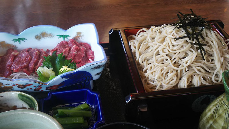 熊本や福島会津のイメージが強い馬肉も信州の名産のひとつ。そばとセットで食べられる店もある。