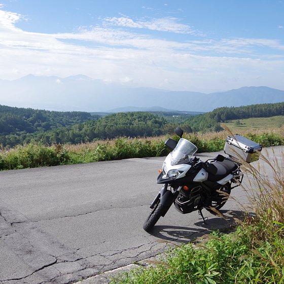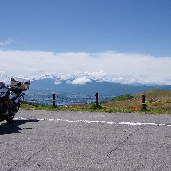 ツーリング始めた頃はパッと見てわかる山は富士山ぐらいだったけど、ビーナスラインを何度も走ってるうちに、有名どころはわかるようになってきた。もうちょっとスッキリした空気だと最高なのだがな。(・∀・)