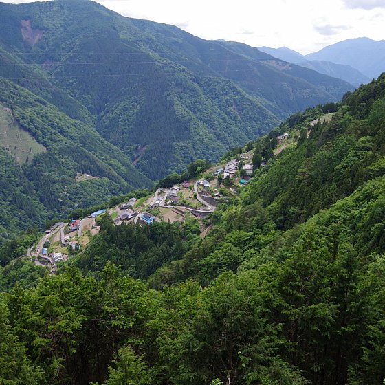 南アルプスの西山麓、最大傾斜38度の傾斜面に拓かれた集落。「日本のチロル」とも呼ばれ、「にほんの里100選」に選ばれた。駐車場からビューポイントまでは約2キロ、山道を歩く。長野県飯田市。