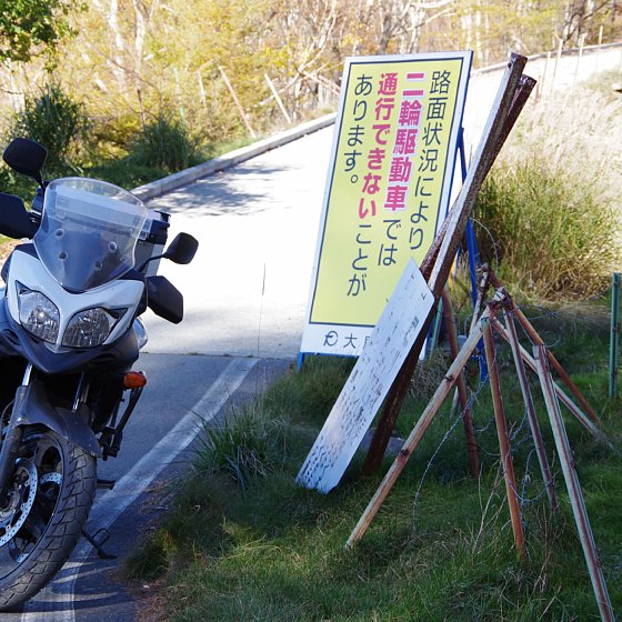 全線開通前のビーナスライン。霧の駅もオープン前。それでもライダーはちらほら。平日なのに。天気いいからね。みんなうきうきしてんだろうなーw 天候次第ではまだ雪が降る時期らしい。