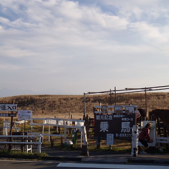 霧ヶ峰高原のドライブイン「霧の駅」にある「ペットはご遠慮ください」。ふつーに2度見したw そんなペット好きの方はバイクを置いて乗馬がオススメw 大人しくお客さんを待ってたお馬さんたち。