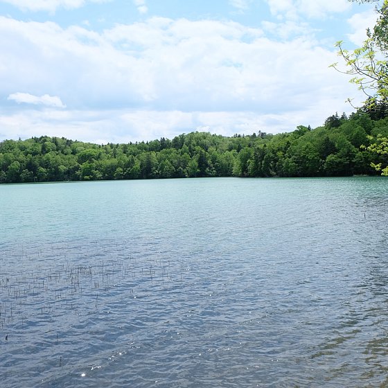 ホントに青い!青池。しかも池の底が見える!神秘的ですなー。駐車場の人に勧められて「沸壺の池」も。ここも透明度が高い!おすすめコースを小走りでまわって25分ほど。朝から汗だく…ε=( ̄。 ̄;)