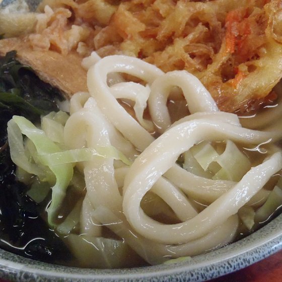 タマゴがまるっと1個入った富士山のかたちをした天ぷらで有名な店。つけうどんや肉うどんも人気。場所はわかりづらいためナビ必須。山梨県富士吉田市。