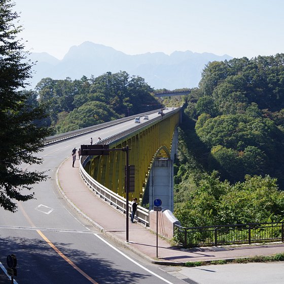 八ヶ岳高原大橋。橋の東側の駐車場にバイクを停めて八ヶ岳を中心にまわりの景色を満喫。走っているとあまり感じないけど、なかなかの高さ。汗